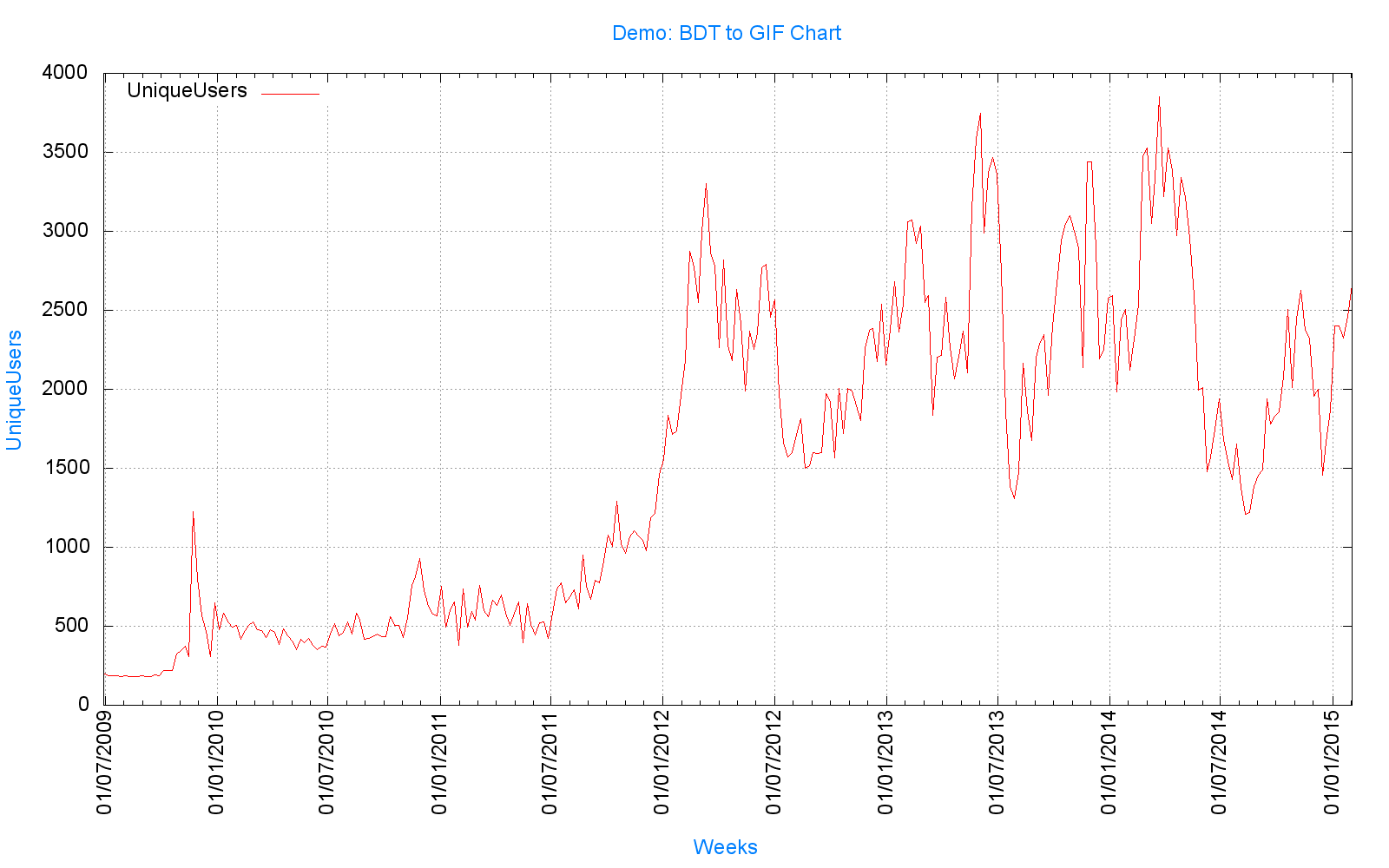 "Leer el fichero de datos en formato Bdt la serie temporal UniqueUsers.",